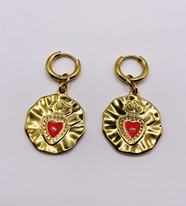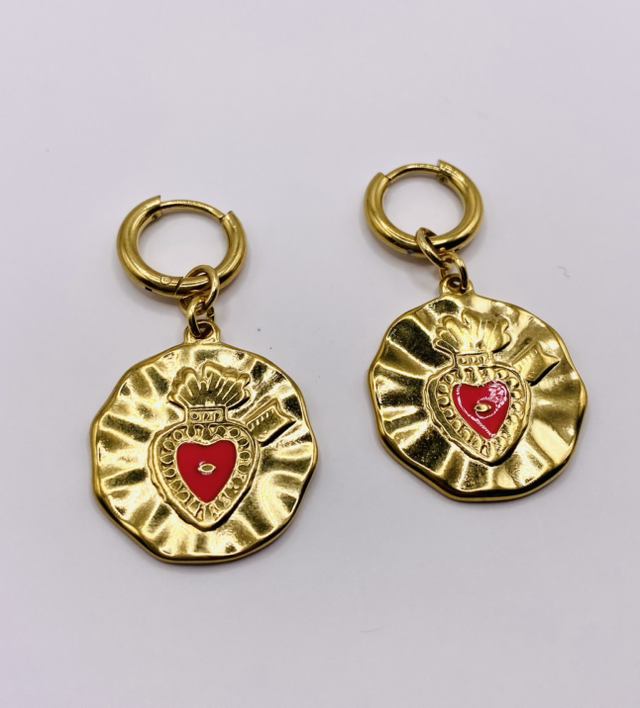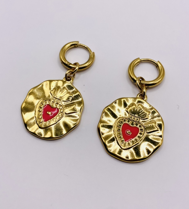 2. Forme : médaille fuschia ornée d’un cœur sacré