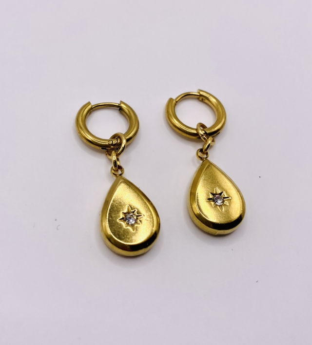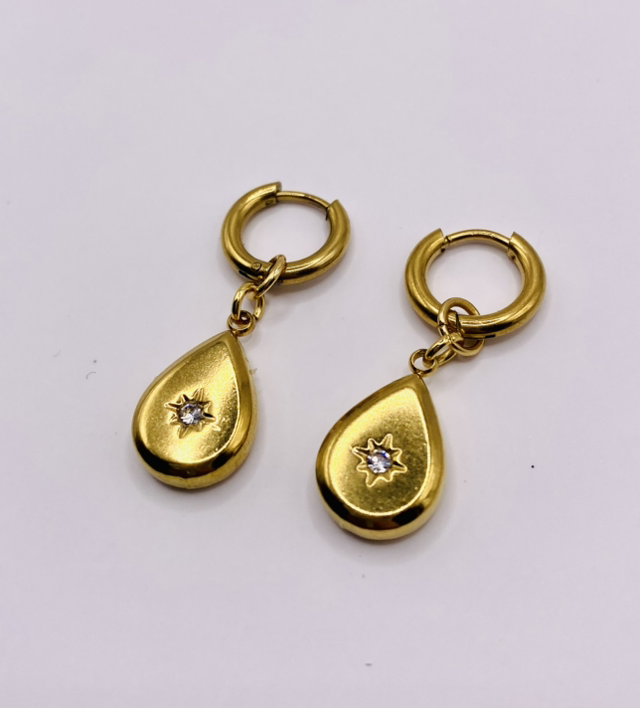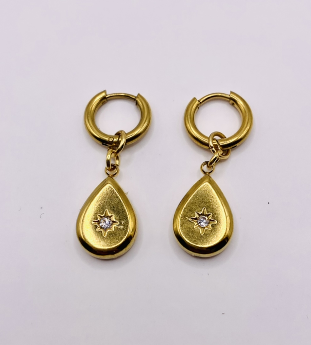 Élégantes et lumineuses, nos boucles d’oreilles « Cléo » en acier inoxydable doré sont assemblées à la main dans notre atelier en Bretagne.