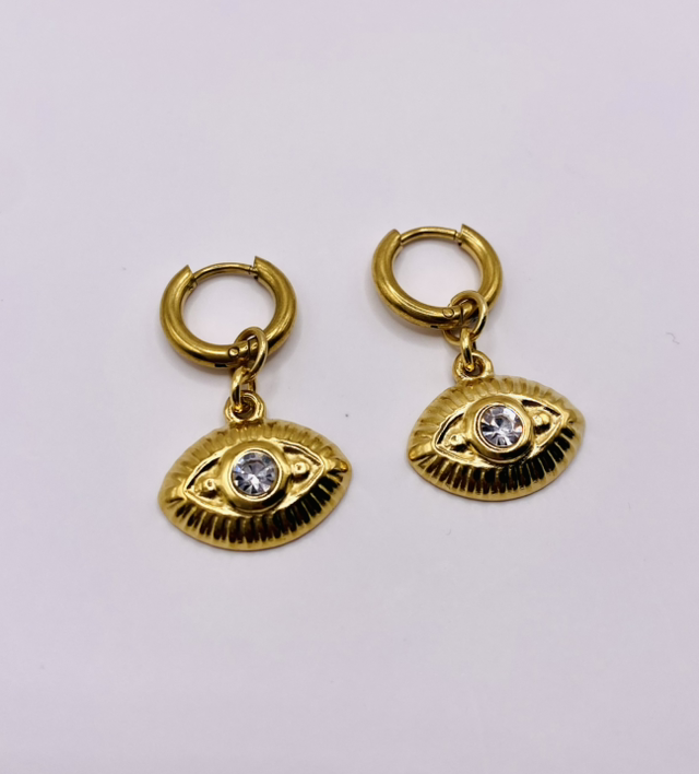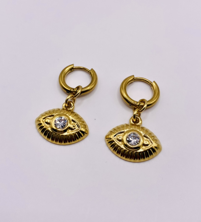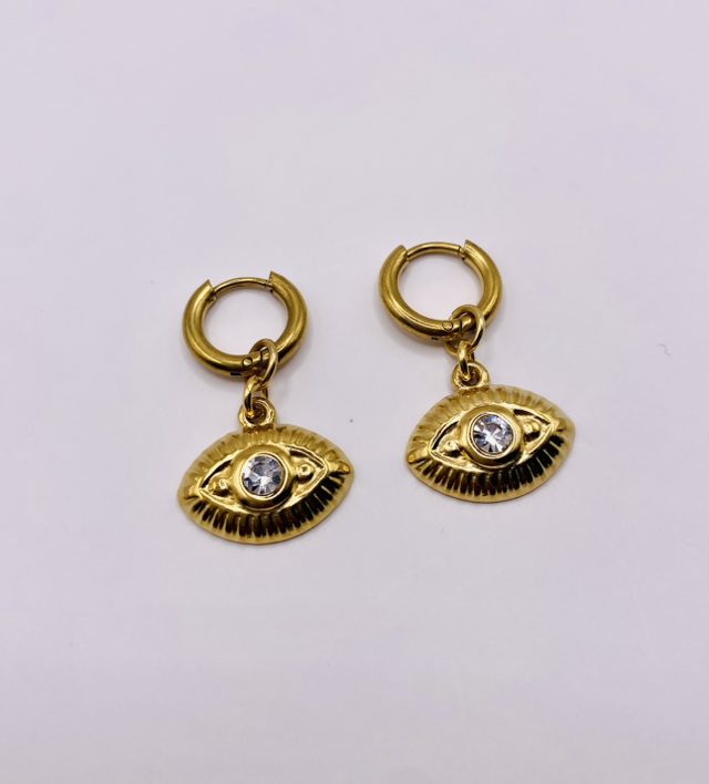 Élégantes et lumineuses, nos boucles d’oreilles « Iris » en acier inoxydable doré sont assemblées à la main dans notre atelier en Bretagne.