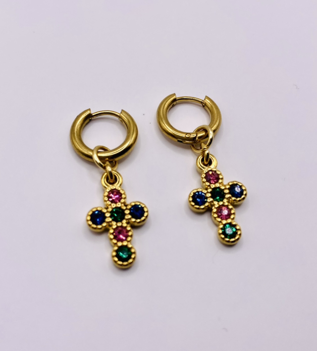 Élégantes et lumineuses, nos boucles d’oreilles « Santa » en acier inoxydable doré sont assemblées à la main dans notre atelier en Bretagne.