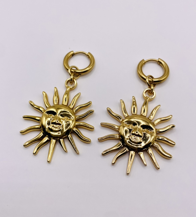 Élégantes et lumineuses, nos boucles d’oreilles « Soledad » en acier inoxydable doré sont assemblées à la main dans notre atelier en Bretagne.