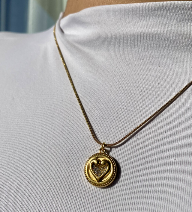 - Forme : médaille cœur serti de strass