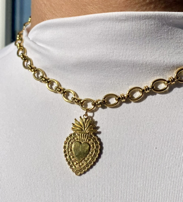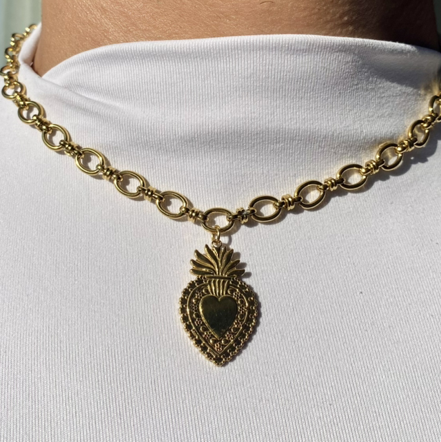 Élégant et lumineux, notre collier "Monica" en acier inoxydable doré est assemblé à la main dans notre atelier en Bretagne.