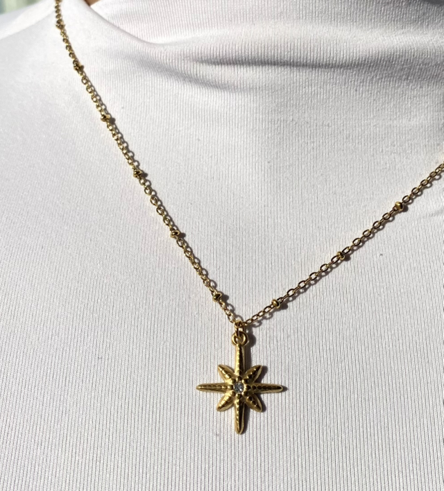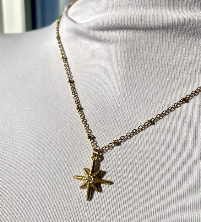 Élégant et lumineux, notre collier "Stella" en acier inoxydable doré est assemblé à la main dans notre atelier en Bretagne.