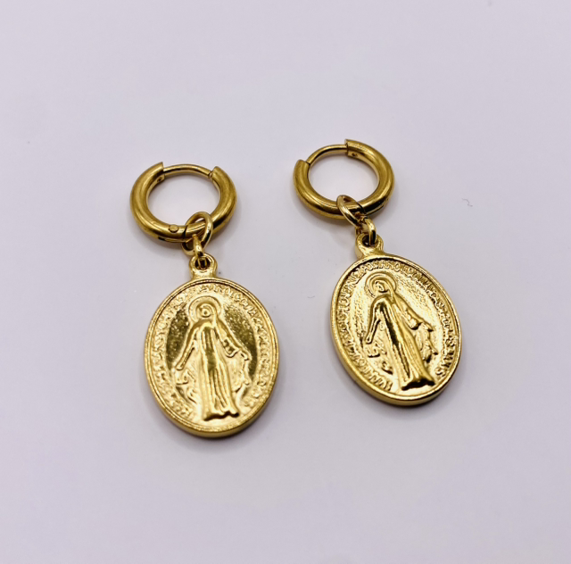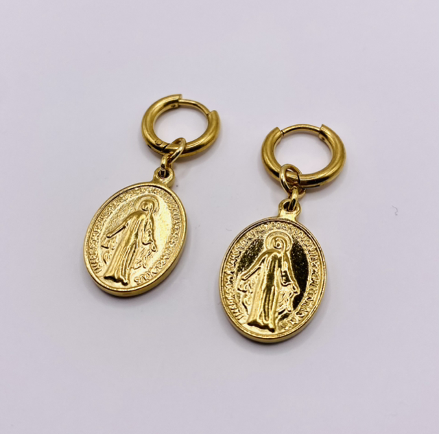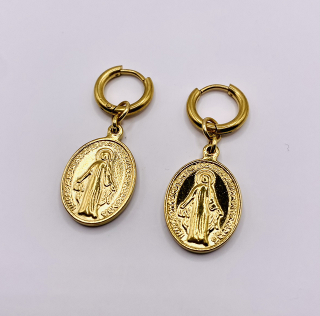 Élégantes et lumineuses, nos boucles d’oreilles « Marie » en acier inoxydable doré sont assemblées à la main dans notre atelier en Bretagne.