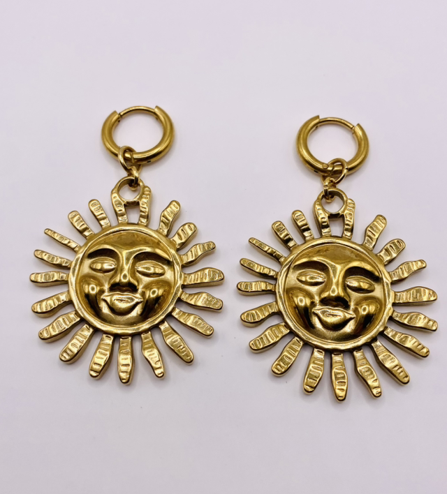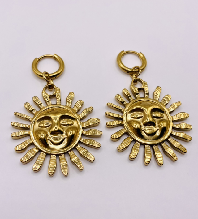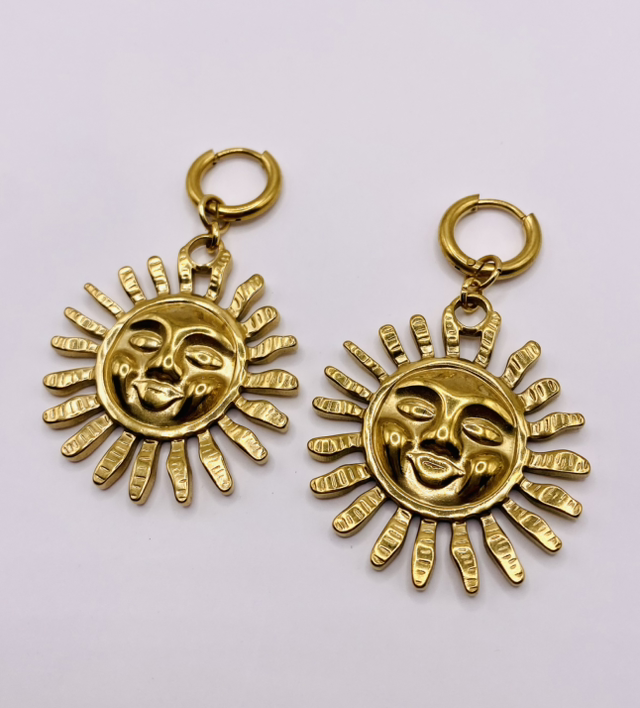 Élégantes et lumineuses, nos boucles d’oreilles « Sól » en acier inoxydable doré sont assemblées à la main dans notre atelier en Bretagne.